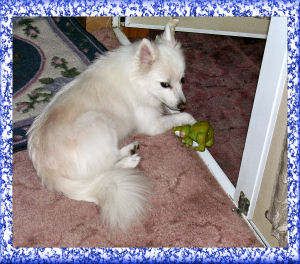 RENO STILL LOVES TO PLAY WITH HIS TOYS. IF HE FINDS A BALL, WE DON'T GET A MOMENT'S PEACE. WE HAVE HIDDEN MOST OF THE BALLS IN SELF DEFENSE. |