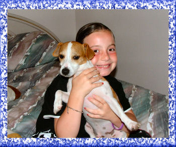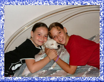 IN JULY JEFF AND HIS FAMILY CAME DOWN FROM MICHIGAN TO VISIT US. MY GRANDDAUGHTERS LOVE SPENDING TIME WITH THE DOGS. * * * * CORTNEY AND LINDSEY WITH HOLLY. |