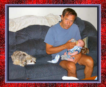 | WELL, AT LEAST GRANDPA HAS TIME TO FEED ME. HEY, GRAMPS, THE "LION" IS WAITING TO GRAB MY FEET AGAIN |