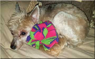 | Our Autumn left us very unexpectedly only 3 weeks ago. We are still in shock and I'm still trying very hard to accept that she's gone. There were no signs whatsoever that our baby was hiding the fact that she had liver cancer for quite some time. We took her in for a dental cleaning on a Wednesday. The vet did a lot of preliminary tests as he always does before a surgery and everything was fairly normal. Her liver numbers were slightly elevated but that was considered normal for a dog Autumn's age of 12. She was fine after the dental procedure but the following day she became very weak. We took her back to the vet who decided to hospitalize her. Her blood sugar was very low and the vets continued to monitor her throughout the night. She fell into a coma late on Thursday. On Friday her blood sugar was still low in spite of being on a glucose drip throughout the night. At this point the vet decided to perform an ultrasound and the liver tumor was discovered. Apparently the tumor had been there for quite some time but Autumn never let on that anything was wrong. Her heart stopped on Friday morning but the vet was able to bring her back....at least for a little while. At lunchtime she coded a second time and took her last breath. |