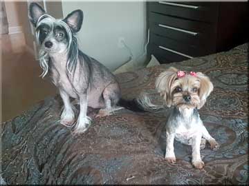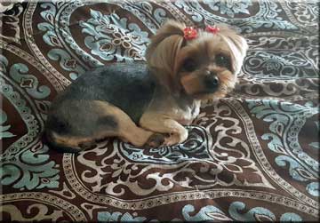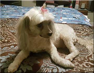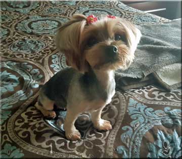 | Bella's first haircut to eliminate all the mats from the puppy mill life |