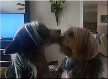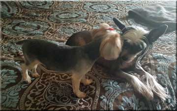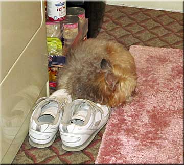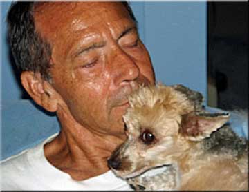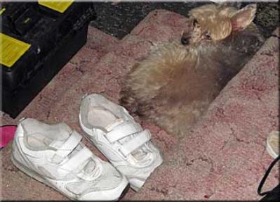 | It was very obvious right from the start that Autumn was her "Daddy's girl". John nicknamed her "Shocka" because he said she was a "warrior". I can't even describe the bond the two of them had. When John was home, she was always with him, snuggling up to him. And when he had to leave the house without her, she would always find a pair of his shoes and lay down with them. Nothing (even offering her a treat) would get her to leave those shoes until he returned home. |