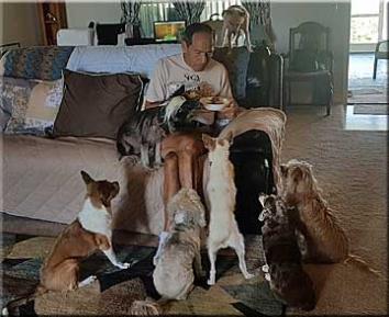 | Max is most definitely showing his age and has slowed down quite a bit except when supper time rolls around. Then he actually bounces through the house to reach his food dish. |