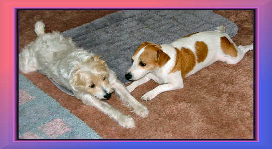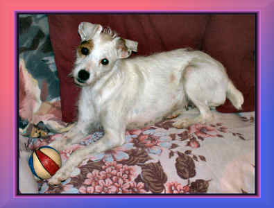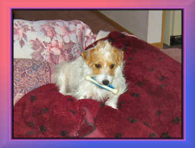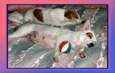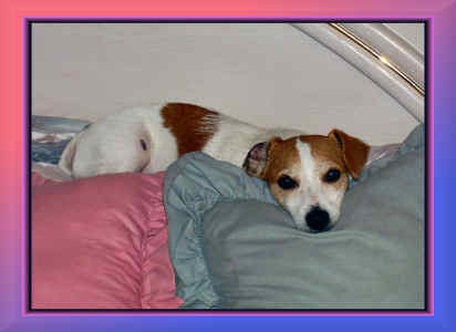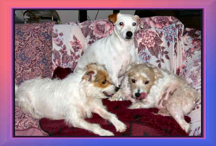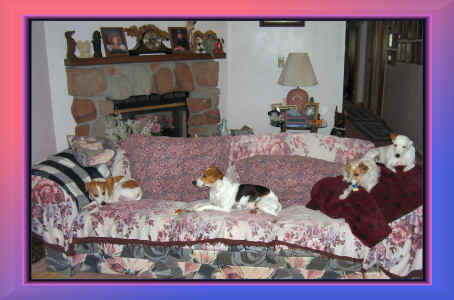 | SOFA FULL OF JACK RUSSELLS. GUESS WHERE WE SIT! |